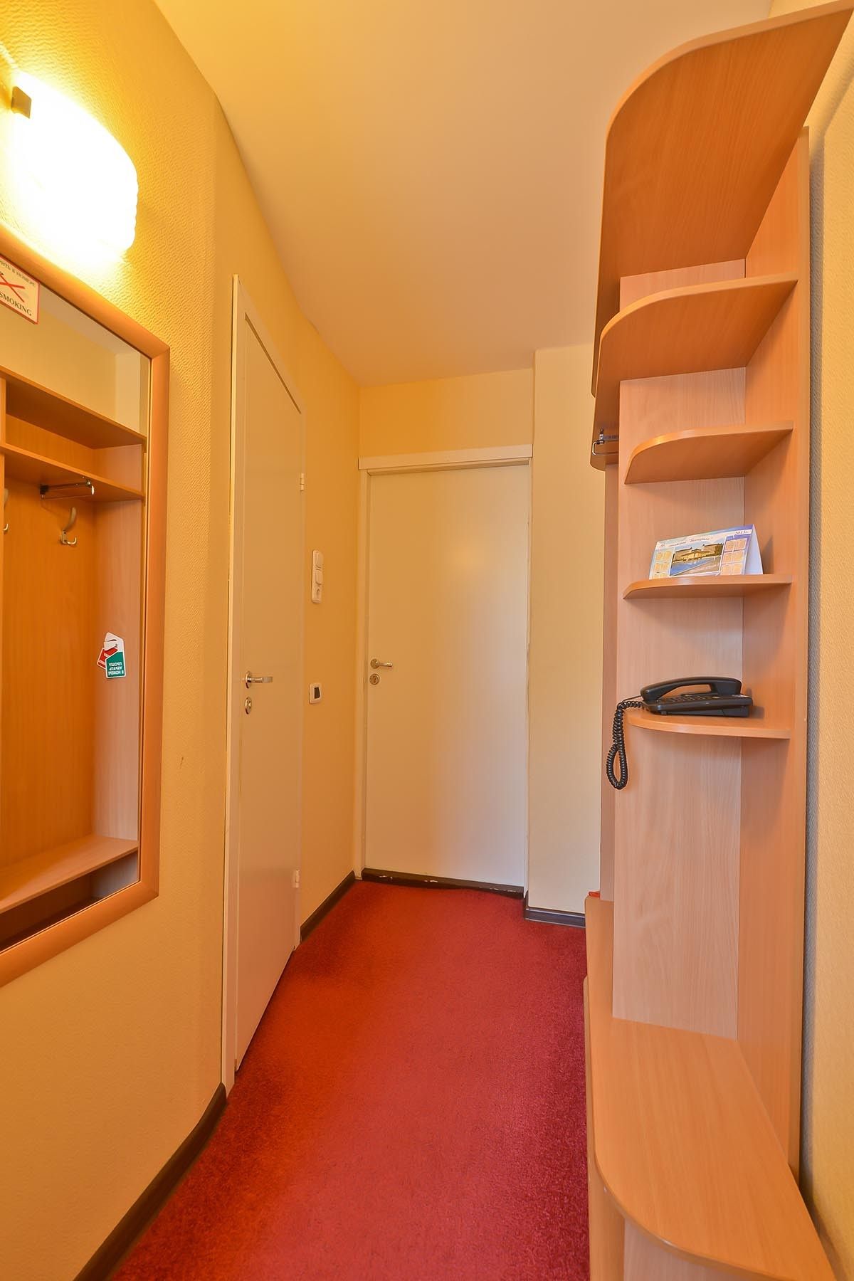 Оборудование номера: кровать полутораспальная, прикроватная тумбочка, шкаф для одежды, стол со стулом, телевизор, холодильник, электрочайник, телефон